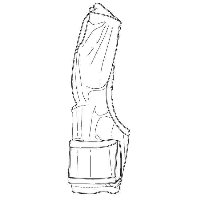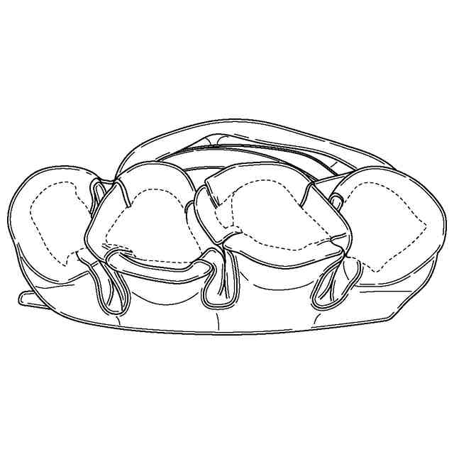 実線で表された部分が意匠登録を受けようとする部分である。実線で表された部分における途切れ状細線は立体表面の形状を特定するためのものである。