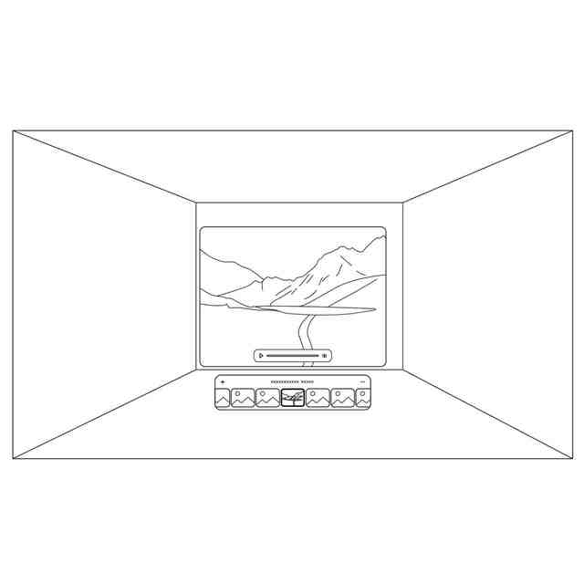 画像図に表されたGUIは、画像作品や動画作品を表示するためのものである。ユーザーは、画像図の中央やや下方に表された、横長隅丸矩形状のボックス内から他の作品をクリックし、表示する作品を切り替えることができる。