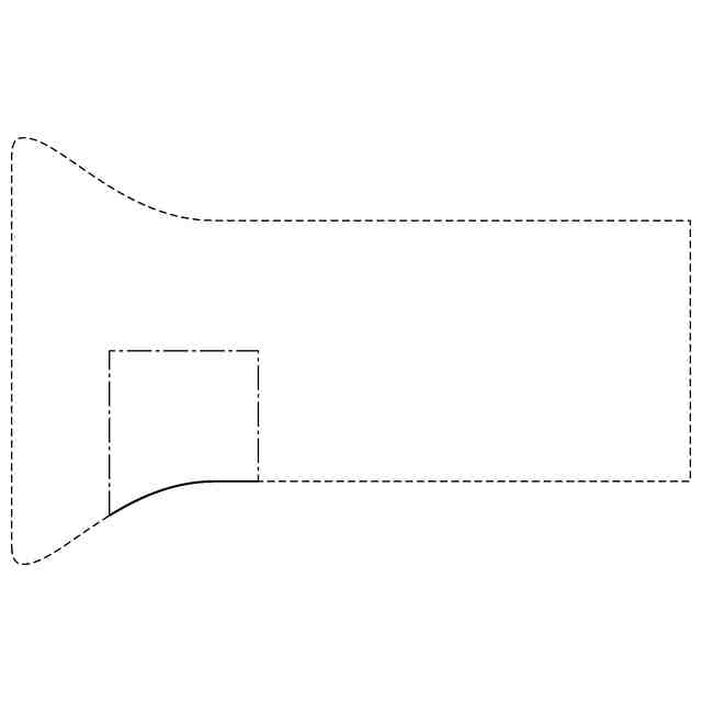 実線で表した部分が意匠登録を受けようとする部分である。一点鎖線は、意匠登録を受けようとする部分とその他の部分との境界のみを示す線である。この意匠の大きさは、正面視の横の長さが最も長い箇所でおよそ9.0mmである。