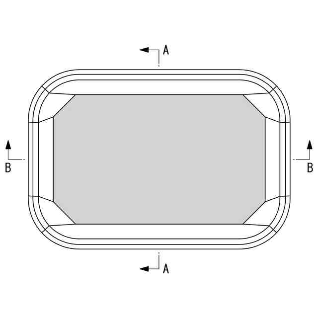 この物品は、参考展開図に示すシート状のブランクがプレス機によって成形されることによって形成される包装用容器である。参考展開図に示したブランクが破線において山折りで、二点鎖線において谷折りで折り曲げられつつ、ブランクが成形時に押圧されながら加熱されることによって、ブランクの表面に設けられた合成樹脂コーティング層が溶融し、ブランクが圧着されて包装用容器としての形状が保持される。容器の縁部は、幅が略一定の水平面と、水平面から連続した、断面が略円形状の縁巻き部分からなることによって、全体的に強度が向上して容器の形状が安定的に保持される。