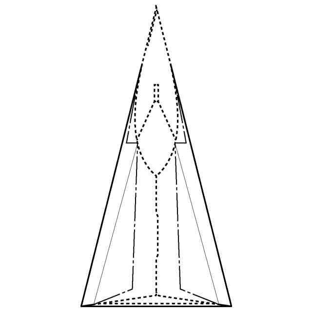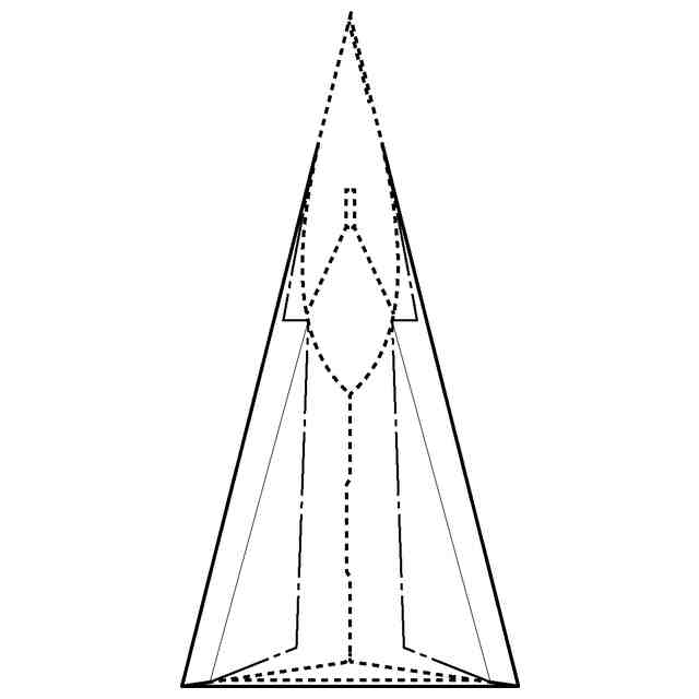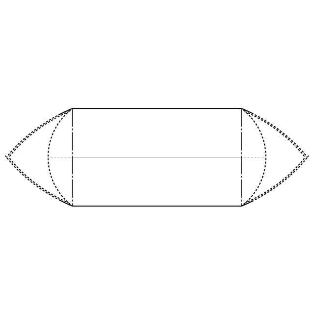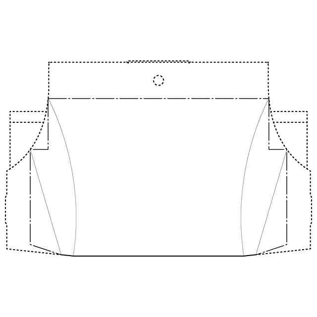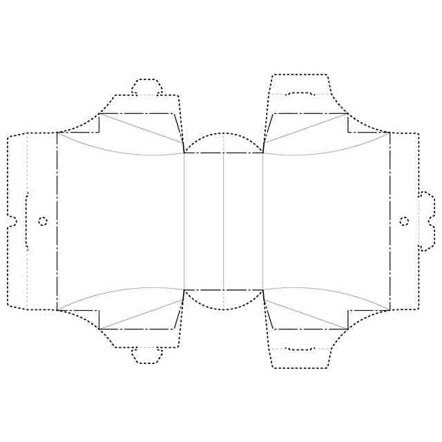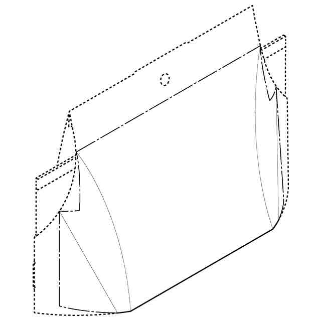 実線で表された部分が、意匠登録を受けようとする部分である。一点鎖線は、意匠登録を受けようとする部分とその他の部分との境界を示す。表面に描かれた細線は、包装用箱の折れ目を示す。