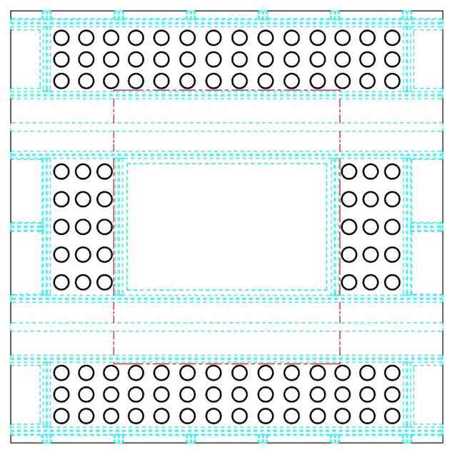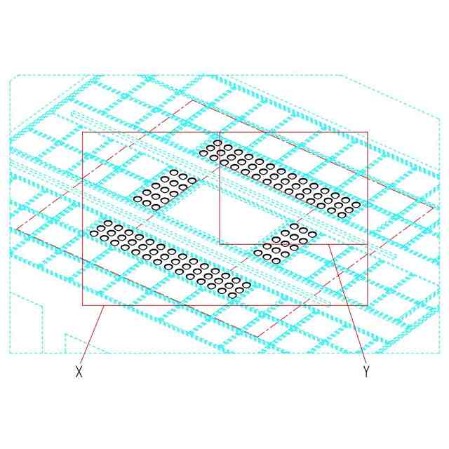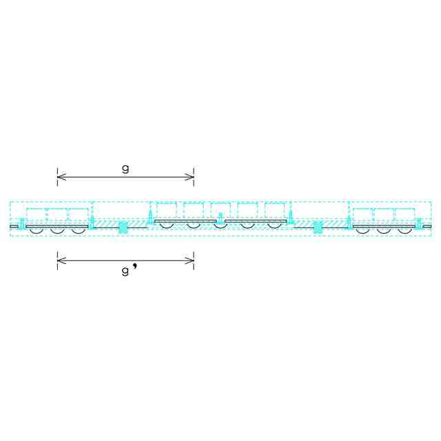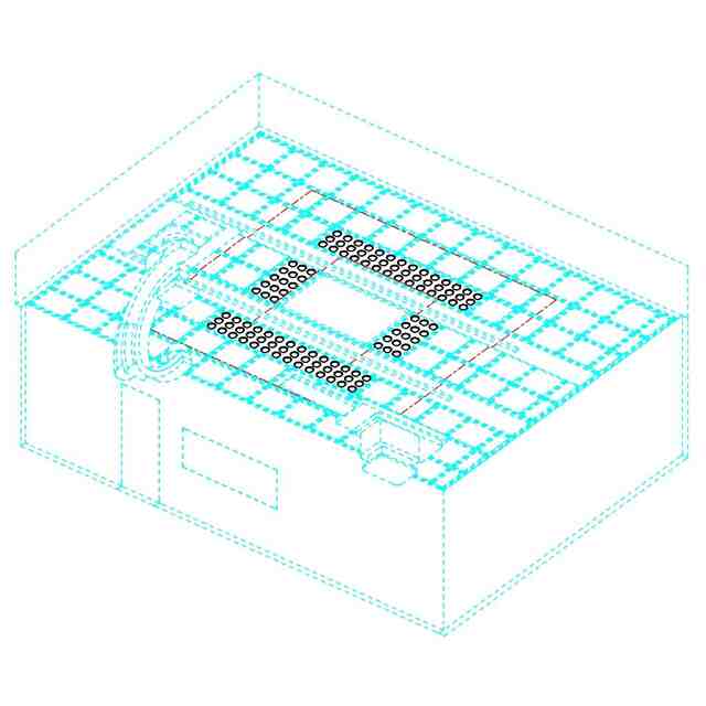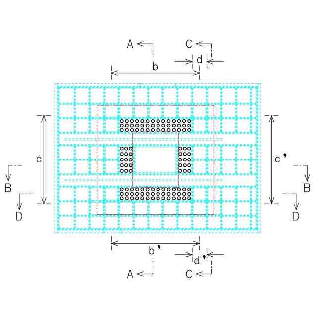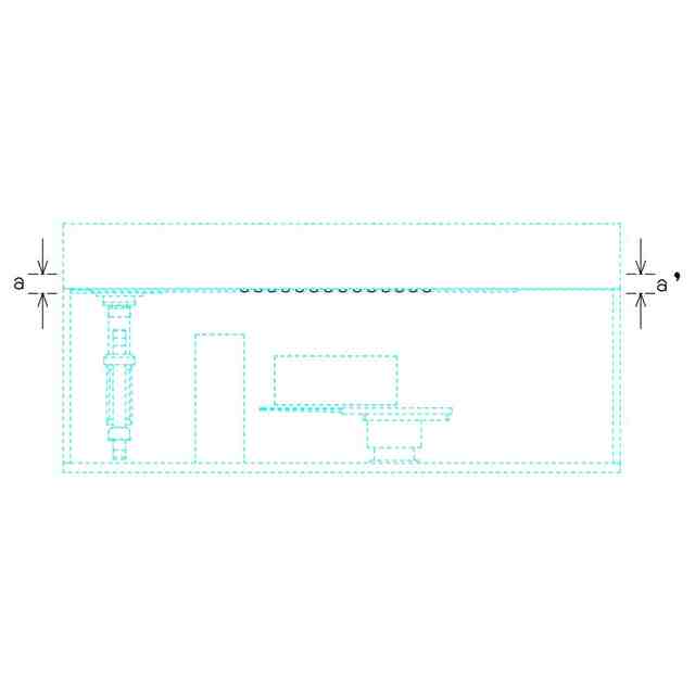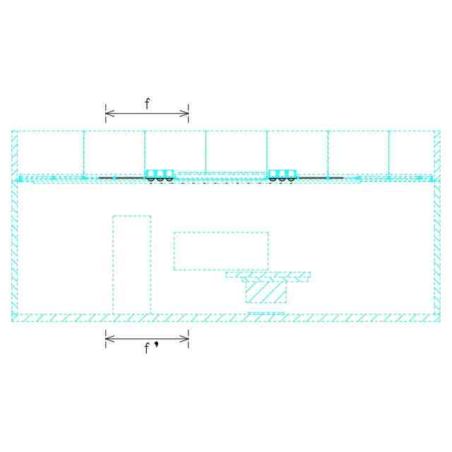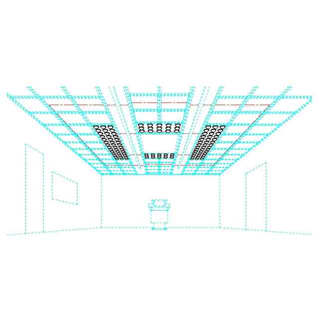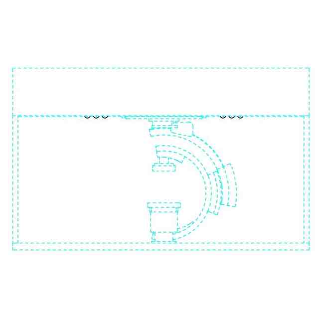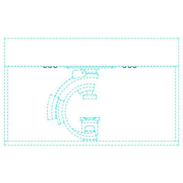 意匠登録を受けようとする部分を黒色の実線でそれ以外の部分を青色の破線で表した。赤色の一点鎖線は、意匠登録を受けようとする部分とそれ以外の部分との境界のみを示すものである。各断面図、各端面図とエア吹出口を表した状態の各図、参考一部拡大斜視図2及びこれらの拡大図以外の図において、クリーンエア吹出パネルに設けられたエア吹出口(複数小孔)を省略している。正面・底面・左側面側からの斜視図は、正面及び左側面側の壁と床を省略した状態で表している。正面図、背面図、左右側面図は、各図手前に表れる壁を、底面図は床を省略した状態で表している。左側面側からの透視図においては、血管撮影装置を省略して表している。A-A拡大断面図とa-a’部におけるc-c’部のC-C拡大断面図は左に90度回転させて表している。A-A拡大断面図及びB-B拡大断面図は、手術台を表した状態で表している。各断面図、各端面図において、内部構造及び内部機構を簡略化して表している。床や壁、天井内部は簡略化して表している。登録を受けようとする部分を示す参考図において、意匠登録を受けようとする部分に薄墨を施した。透光性を有する部分を示す参考図において薄墨を施した部分は面発光照明部分であり、透光性を有する。透明部を示す参考図において薄墨を施した部分は、シューティングライトのドーム状前面カバーであって透明である。なお、血管撮影装置を手術台に設置した状態の各図は、血管撮影装置本体を移動体とともに移動レールに沿って移動させた状態を表している。