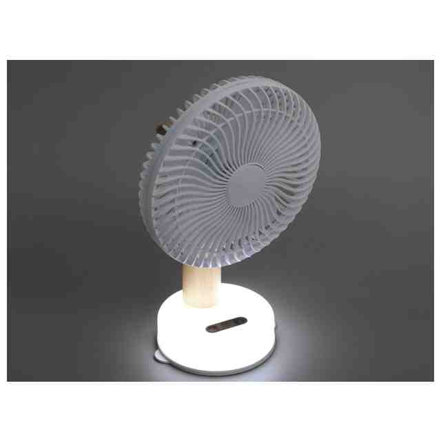 本物品は、扇風機である。通常、卓上式又は壁掛け式として使用されるが、台座の底蓋を利用したクランプ式の扇風機として使用することもできる。底蓋を可動した状態を示す正面参考図及び底蓋を可動した状態を示す側面参考図に示すように台座の底蓋が可動し、底蓋を下方向に動かすことにより板等に挟み込み固定することができる。また、台座の照明を点灯した状態を示す参考図及び台座の照明を消灯した状態を示す参考図に示すように台座は照明機能をもつ。