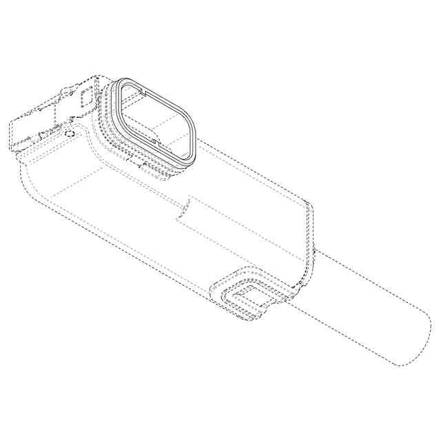 実線で表された部分が、意匠登録を受けようとする部分である。細線は立体表面の形状を表す。
