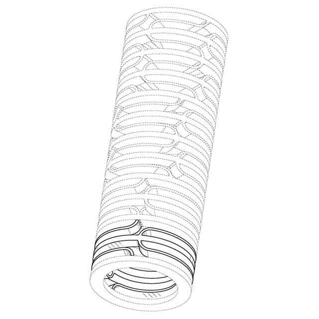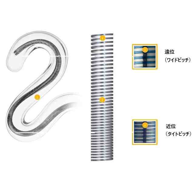 本物品は、カテーテル本体のレイヤーの長手方向のセグメントであり、カテーテルの内部に使用される内部補強材である。使用状態の一例を示す各参考図に示されるように、屈曲の中でもカテーテルの内腔の潰れを抑え、また、ピッチ幅を変化させることによって優れたプッシャビリティを実現することができる。