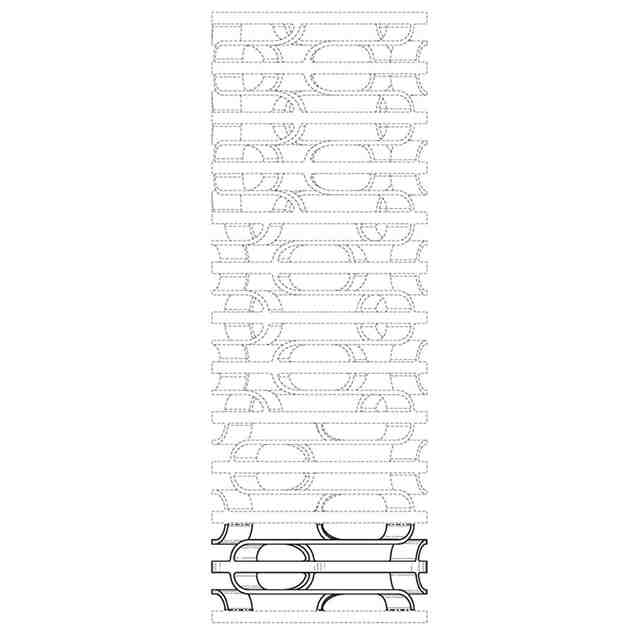 実線で表された部分が部分意匠として意匠登録を受けようとする部分である。一点鎖線は意匠登録を受けようとする部分とその他の部分との境界のみを示す線である。各図における細線は立体表面の形状を表わす線であり、いずれも意匠を構成するものではない。