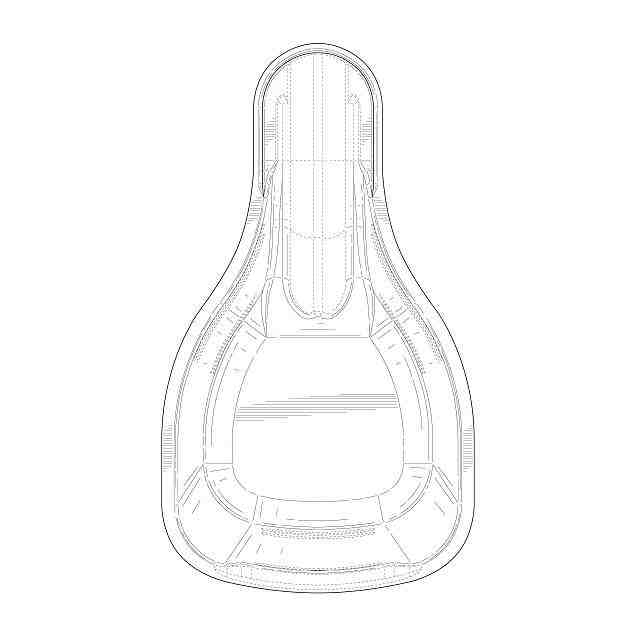 実線で表した部分が部分意匠として意匠登録を受けようとする部分である。左側面図は右側面図と対称に表れるので、左側面図を省略した。各部の表面に表された細線は、いずれも立体形状を特定するためのものである。