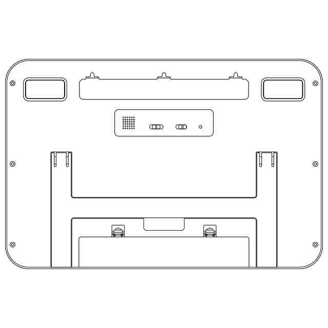 本願の正面図中央の矩形区画内は液晶表示部であり、正面上枠右辺寄りの小円形部はリモコン操作用の赤外線受信部である。