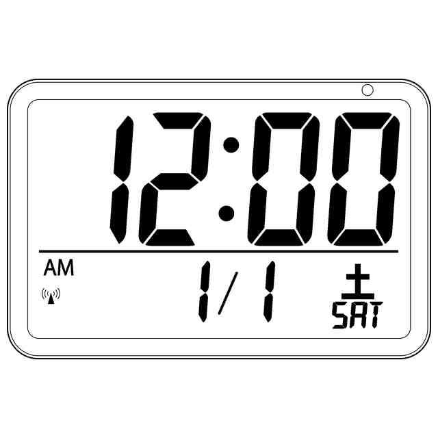 本物品は、背面上辺寄りの横長凹部が持ち手部となり、その凹部上辺3箇所の壁掛けフック或いは背面上辺寄り左右の矩形磁石によって、壁面等に設置して使用するほか、背面のH形状脚を開いて置き時計としても使用できる大型時計(縦260ミリメートル、横390ミリメートル)である。