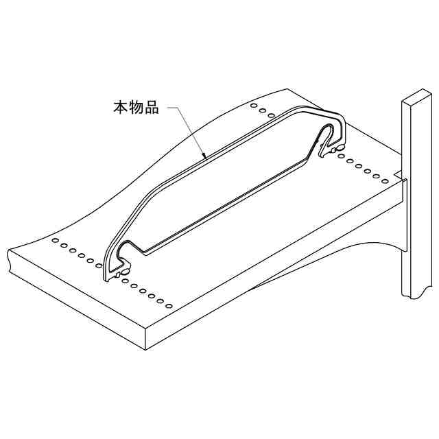 本物品は使用状態を示す参考図の様に、店舗等の商品陳列棚の棚上面に取り付けて使用するものである。