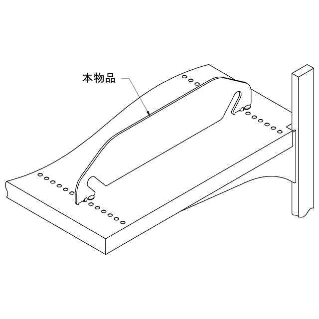 本物品は使用状態を示す参考図の様に、店舗等の商品陳列棚の棚上面に取り付けて使用するものである。
