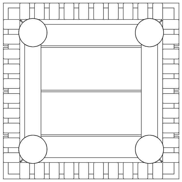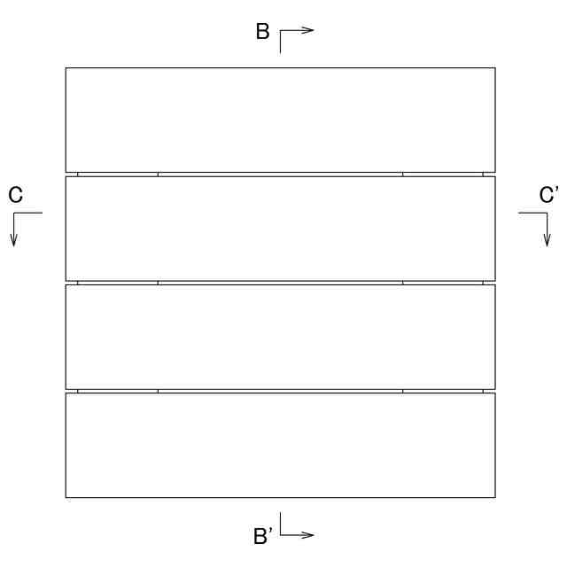 背面図は正面図と同一形状であるので省略する。左側面図は右側面図と同一形状であるので省略する。A-A’線断面拡大図は、正面図のA-A’線断面拡大図である。B-B’線断面拡大図は、平面図のB-B’線断面拡大図である。C-C’線断面拡大図は、平面図のC-C’線断面拡大図である。斜視図は、本願意匠に係る椅子を正面右斜め上方から見た斜視図である。
