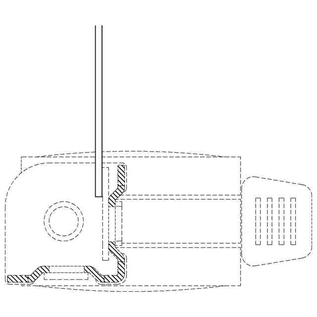 背面図は正面図と対称にあらわれるため省略する。実線で示した部分が、部分意匠として意匠登録を受けようとする部分である。一点鎖線は部分意匠として意匠登録を受けようとする部分とその他の部分との境界のみを示す線である。