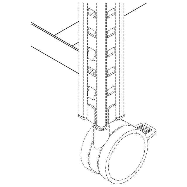 本物品は、天板の四隅下方に断面略L字状の支柱脚を備えたものである。支柱には上下方向に棚を係止する為の複数の穴を備えており、係止位置を高さ方向において変更可能としたものである。