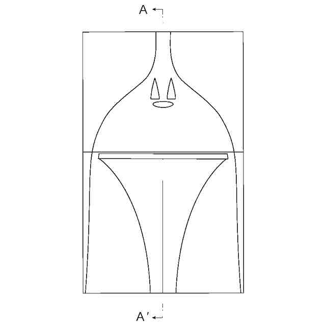 A-A’切断面図は、正面図に示すA-A’線にて切断した切断面図である。A-A’切断面図に示される斜線部に配置される内部構造については省略している。