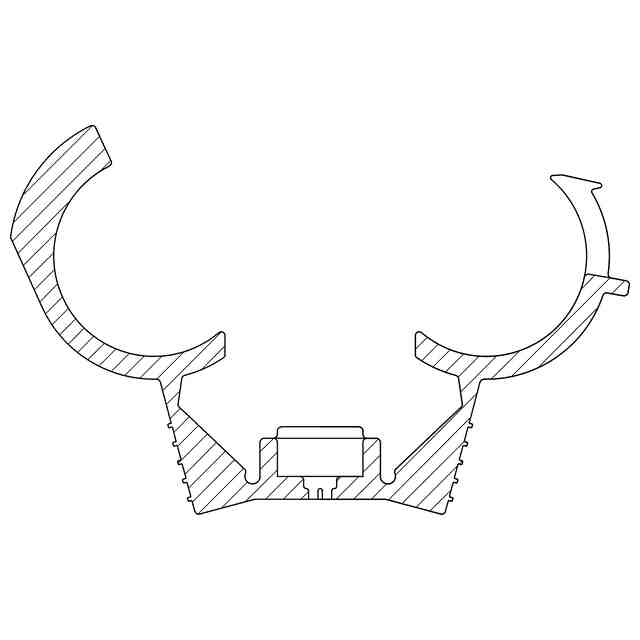本願意匠に係る物品は、建築物等の構造体に配管を固定するための配管用支持具であって、「使用状態を示す参考図1」に示すように、台座部の中央にビスを打ち込むことで、台座部の撓みがやや平らになるとともに、配管支持部が半閉じの状態で構造体に固定される。配管を設置する際は、「使用状態を示す参考図2」に示すように、配管を配管支持部の間に押し込むことで配管支持部が配管を挟むように閉じることで固定される。