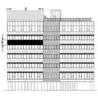 各図において、実線で表した部分が「部分意匠として意匠登録を受けようとする部分」であり、破線で表した部分がその他の部分である。各断面図において、内部構造は簡略化して表している。透明部を示す各参考図において、薄墨を施した部分は透明である。各図において、透明部は不透明体として表している。「G-G線拡大断面下方斜視図」は、エントランスホールの床、階段、エスカレーター、受付カウンター及び正面側に設けられたガラス壁を省略して表している。「a-a’部におけるH-H線拡大断面下方斜視図」は、エントランスホールの床及び背面側に設けられたガラス壁を省略して表している。底面図は、建築物のため省略する。