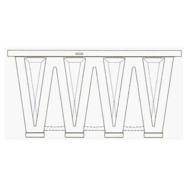 発行日2025-09-02 公報種別意匠公報(S) 登録番号1807617 登録日2025-08-25 意匠に係る物品V-Bank air filter 意匠分類D4-39(暖冷房機又は空調換気機器) 出願番号2023501440,29854400 出願日 意匠権者Camfil AB 代理人園田・小林弁理士法人 意匠に係る物品の説明 意匠の説明The present design is a V-bank air filter of a new design; 1.1 is a front perspective view of the V-bank air filter of a new design; 1.2 is a back perspective view of the V-bank air filter; 1.3 is a front view of the V-bank air filter; 1.4 is a side view of one side of the V-bank air filter; 1.5 is a back view of the V-bank air filter; 1.6 is a side view the V-bank air filter that is opposite of the side shown in Figure 1.4; 1.7 is a top view of the V-bank air filter; 1.8 is a bottom view of the V-bank air filter; 1.9 is a reference side view of the V-bank air filter illustrating with break lines that no particular height is claimed; 1.9 indicates that the height varies within the break lines; portions of the V-bank air filter shown in broken lines form no part of the claimed design; all surfaces not shown form no part of the claimed design. 1.1)Front perspective; 1.2)Back perspective; 1.3)Front; 1.4)Side; 1.5)Back; 1.6)Side; 1.7)Top; 1.8)Bottom; 1.9)Reference この意匠をJ-PlatPat(特許庁公式サイト)で参照する