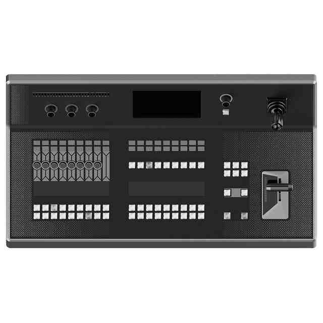 Reproductions 1.1 to 1.7 show the design of a broadcast console for controlling video, audio, and image signals; Reproductions are as follows: 1.1 - perspective view; 1.2 - front view; 1.3 - rear view; 1.4 - left view; 1.5 - right view; 1.6 - top view; 1.7 - bottom view. 1.1)Perspective; 1.2)Front; 1.3)Back; 1.4)Left; 1.5)Right; 1.6)Top; 1.7)Bottom
