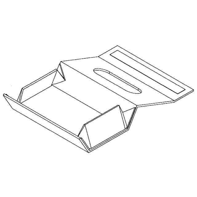 本物品は車両のサンバイザー、ドアポケット等に固定可能な折り畳み式のティッシュケースである。通常時は蓋を開けた参考図1の様に折り畳まれた状態であり、蓋を開けた参考図2の様に側面を立てる事で、市販のティッシュボックスを収納するスペースができ、蓋を閉じる事でティッシュボックスが収納できます。背面にはカード等を収納できるポケットと取付け用のクリップが左右に取付けされています。