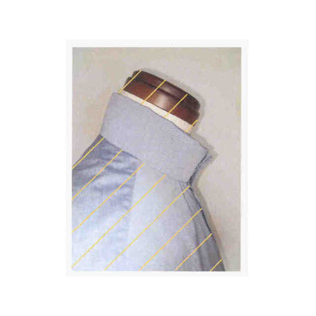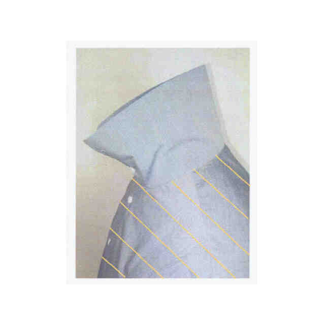 本品はタートルネックに分類されるシャツであり、バンドカラー、スタンドカラー、ハイネックとは異なる。幅広に設計された衿をふんわりと折り返して留める事で柔らかい印象を与える。印象だけではなくバンドカラー、スタンドカラー、ハイネックとは異なり柔らかく作る事が出来るのでとても肌触りの良い仕上がりとなる。通常タートルネックは伸縮性が強いニットやカットソー等の素材で開きが無い状態で作られる。しかし本品は伸縮性に乏しい素材であっても開きを設ける事でタートルネックに分類される衿の作成が可能となる。タートルネックに分類されるシャツの利点として下記の事が上げられる。ニットやカットソー等はフォーマルやビジネスの場には適さないが、シャツであればフォーマルやビジネスの場にも違和感なく使用する事が出来る。またカジュアルでも衿の留め方や折り方等で様々な着こなしが可能となる。ニットやカットソーとは違い通年を通して着用が可能である。釦以外の留め具や開きのバリエーションと組み合わせる事で様々なデザインやシーンに合わせて作成する事が可能となる。参考図として衿を伸ばした状態の正面図、右側面図、左側面図を添付する。