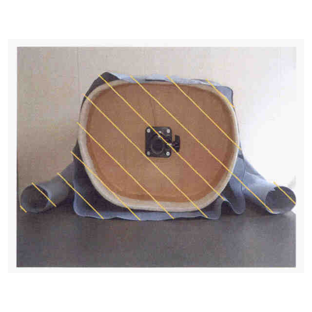 写真の斜線部分は意匠登録を受けようとする意匠以外の物品である。また写真の濃淡は生地の皴による影である。