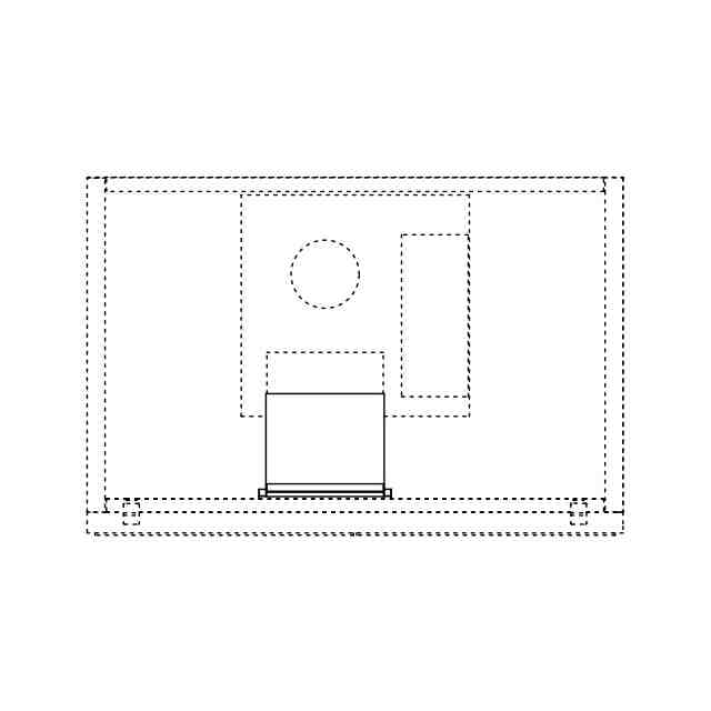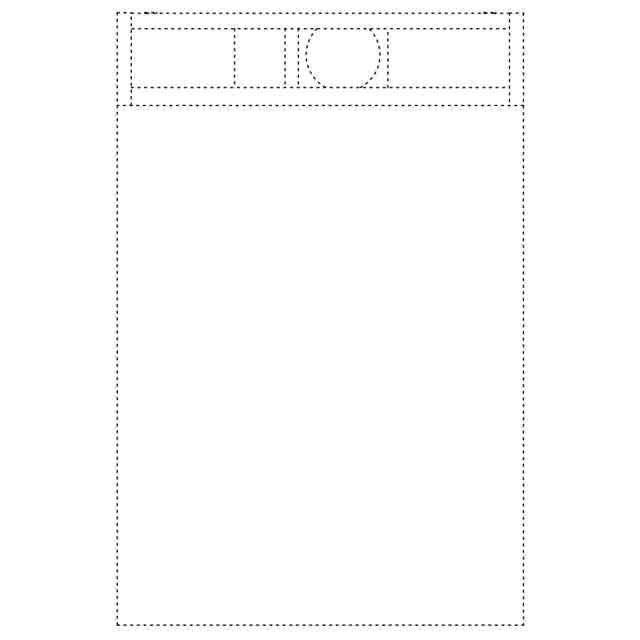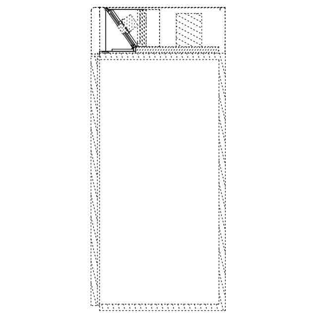 実線で表された部分が、部分意匠として意匠登録を受けようとする部分である。また、「前面パネルを開いた状態の参考斜視図」において、薄墨を付した部分以外の部分が、意匠登録を受けようとする部分である。「内部構造を省略したA-A線断面図」、「内部構造を省略したB-B線断面図」、「前面パネルを開いた状態の正面図」、「C-D間部分拡大図」を含めて意匠登録を受けようとする部分を特定している。右側面図は左側面図と対称に表れるため省略する。