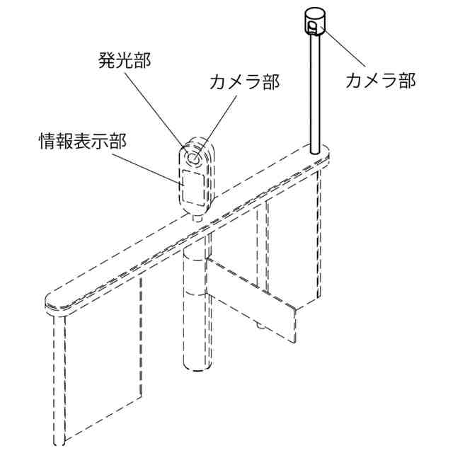 本物品は、「認証ゲート」であって、空港の出入国審査場等に設置されるものである。本物品は、認証機、監視カメラ等を有しており、通行者が本物品に近づくと自動的に顔認証が行われ、通行の可否が判断される。「参考背面図」等に示すように、監視カメラの背面に設けられた発光部が点灯することで、離れた位置にいる空港職員等に対して通行可否等の情報を知らせることができる。