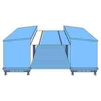 本物品は、台車に載せられて自動車によって牽引・搬送され、台車に載せられた状態のまま、定置可能な場所に定置されて使用されるトレーラーハウスである。台車には、第一箱型ユニットと、第二箱型ユニットと、が載せられて固定されている。第一箱型ユニットは台車の長さ方向一端部に位置し、第二箱型ユニットは台車の長さ方向他端部に位置しており、第一箱型ユニットと第二箱型ユニットは互いに間隔を空けて配置されている。