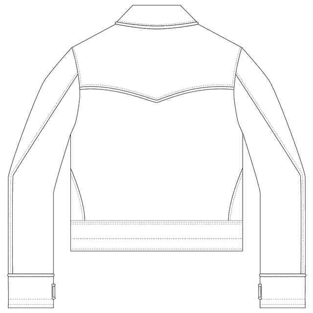 参考正面図において、オレンジ線は、左前身頃で隠れる右前身頃の大きさを示している。各図において、破線は、ステッチ(縫目)である。