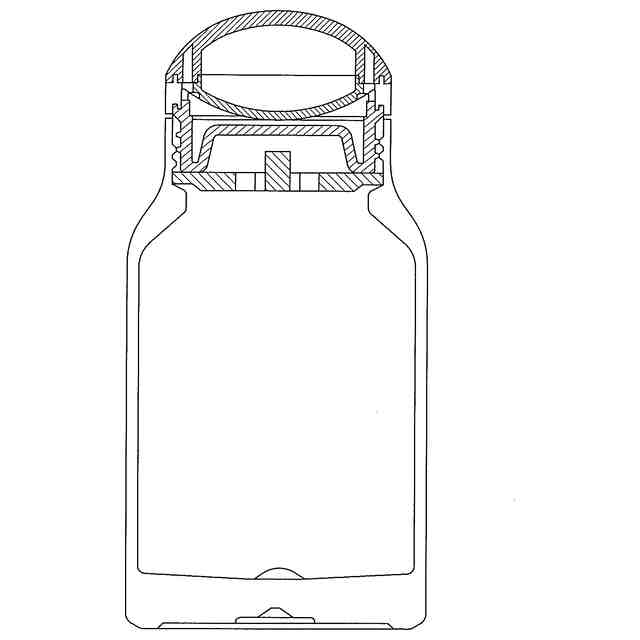 本物品は、ハンドルを持って回して外す蓋部と、パッキン兼氷止め部材と、本体部とからなるボトルである。