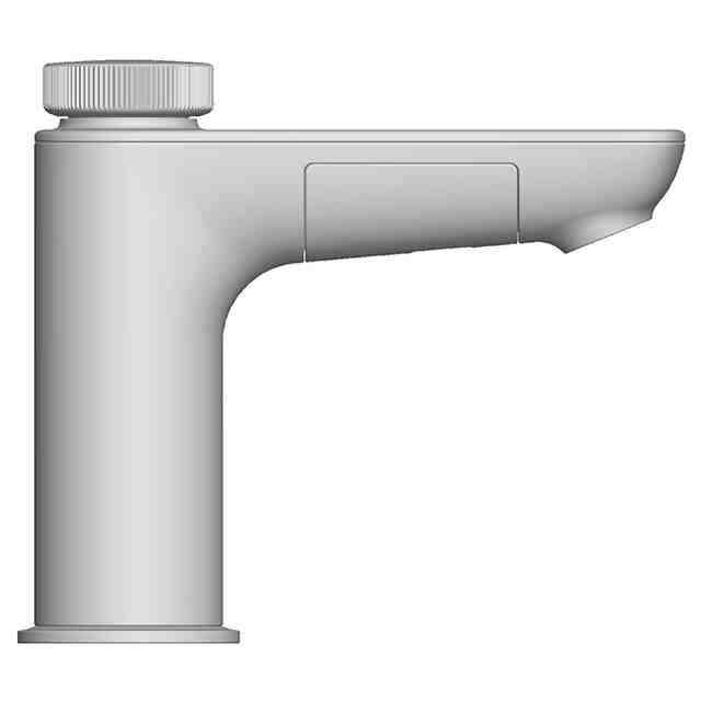 左側面図から底面図にかけて表れる輪郭矩形の曲面は、センサーである。本物品は、センサーに手をかざすことにより、吐止水の操作をすることができる。