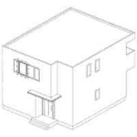 実線で表した部分が、意匠登録を受けようとする部分である。一点鎖線は、意匠登録を受けようとする部分とその他の部分との境界のみを示す線である。各断面図は内部構造を省略して表す。透明部分を示す建物の参考拡大斜視図の網点部は透明材質を示す。土地の定着物につき底面図を省略する。