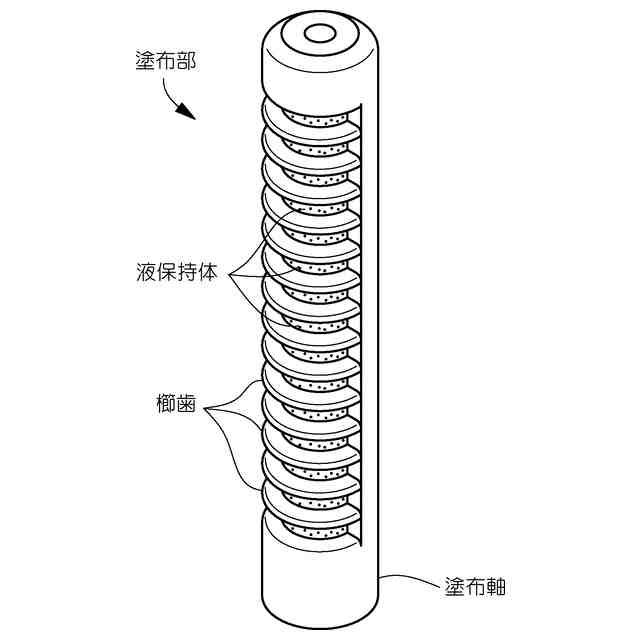 本物品は、頭髪やまつ毛に液体の化粧料を塗布するための化粧料塗布具である。化粧料塗布具は、塗布軸の先端に塗布部が設けられており、塗布部の内部には、軸体の周囲に短繊維が植毛された液保持体が収容されている。また、塗布部は、その半周面に櫛歯列が形成されており、隣り合う櫛歯の間から液保持体が露出するように構成されている。液保持体を設けることにより、より多量の化粧料を塗布部に保持させた状態で、化粧料を塗布することができる。