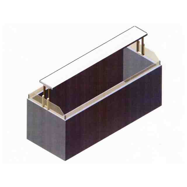 本物品は、使用状態参考図に示すように上面が開口する冷蔵ショーケースに設置し、内蔵する遮熱板を冷蔵ショーケースの開口の上方に架け渡して支持し、天井照明等の上方からの輻射熱を遮熱板で遮蔽する。