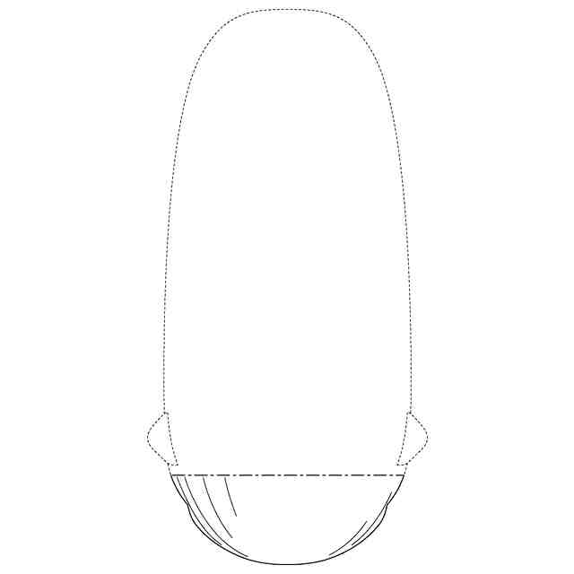 実線で表された部分が、意匠登録を受けようとする部分である。一点鎖線は、意匠登録を受けようとする部分とその他の部分との境界のみを示す線である。図面に表されている破切れた細線は、模様を表す線ではなく、いずれも立体表面の形状を表す線である。