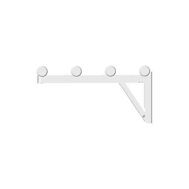 本物品は、室内の壁面等に取り付けられる折り畳み可能な収納棚であり、上面に、畳んだ洋服等を収納したり、洋服を掛けたハンガー等を掛けて使用するものである。
