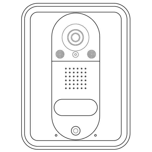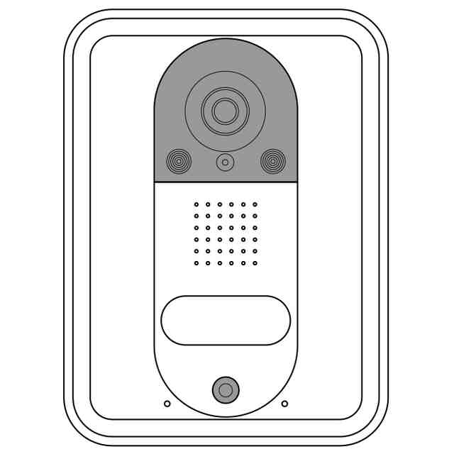 本物品は、玄関等に設置されるテレビドアホンの玄関カメラであり、カメラ、スピーカー、呼出ボタンおよびマイクを備えている。