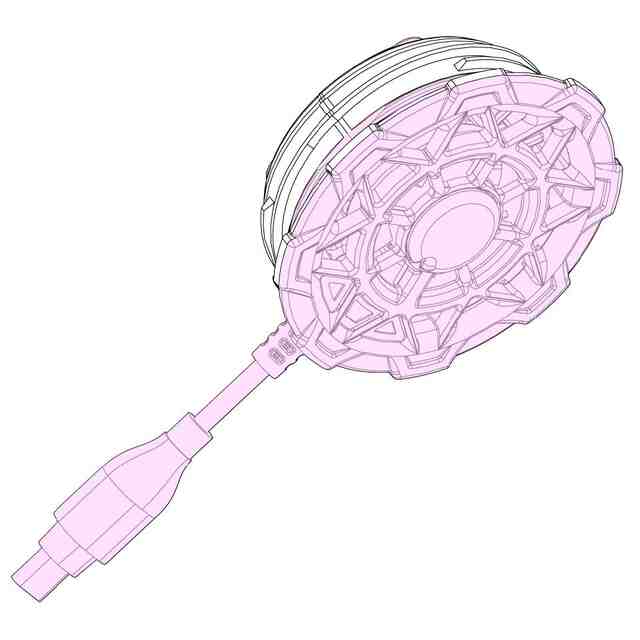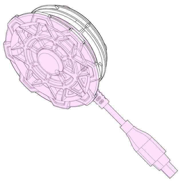 本願意匠に係る物品は、衣服等に装着して使用するペルチェ冷却ユニットである。本件物品はペルチェ素子の吸熱作用によって、背面部に設けられた冷却面が低温となる。ペルチェ素子から放出される熱は放熱ファンにより排出される。