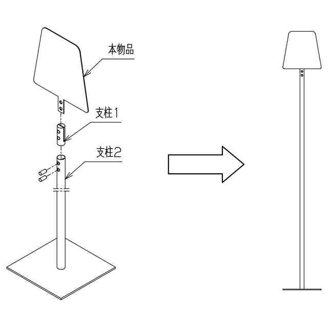 この物品は、使用状態を示す参考図1、2に示すように、支柱に取り付けて案内標識として使用される案内標識用板である。本物品は、コップの中に小さく収まるのではなく、コップの中身をぶちまけるように広く心を開いたコミュニケーションを行う空間を創出するというコンセプトに基づいて創作された意匠である。具体的には、本物品の正面視形状をコップを逆さにしたデザインとすることによって、当該コンセプトを表している。