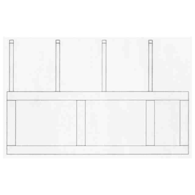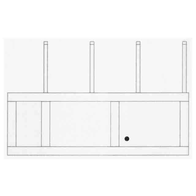 1.正面図,背面図,左側面図,底面図において,ベットフレームの内側部分は板材で塞がれている 2.底面図における,右寄りの部分(及び右側面側)は,板材で塞がれておらず,開放構造となっており,右端から約1/4内側の位置において側面が板材で塞がれている 3.平面図における,縦桟部分は,蒸気を通すためにスノコ状となっている。一方で,右寄りの部分(頭部側)は縦桟が密着して配置されかつ裏側は板材で塞がれている 4.上部には,四連の門型のシートのフレームを設けられている 5.正面図における真ん中の板材部分は取り外し可能な構造となっており,そこからよもぎ及びハーブを出し入れする事が可能である 6.背面図,右側面図における黒丸は配線用の開通穴である