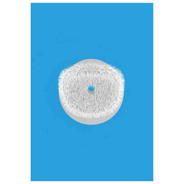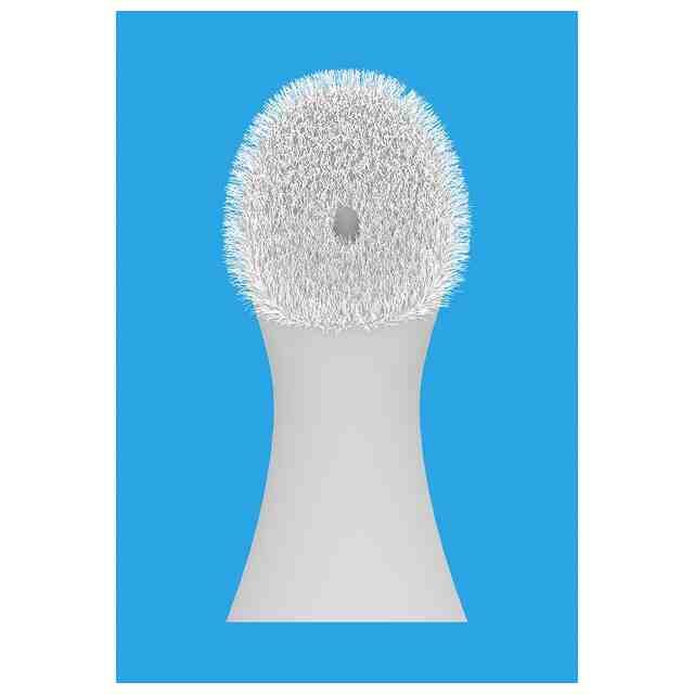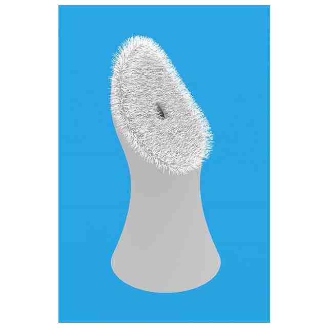 本物品は、化粧用ブラシであり、各図に示されたように、中央に小孔が貫通した縦長の略長円形状の曲面に短いブラシ毛が植毛されている。