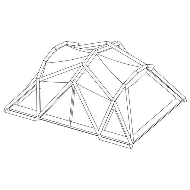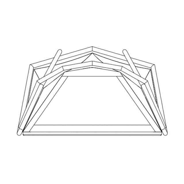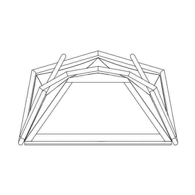本物品は、テントである。正面図におけるテントの正面側に、出入り口となる開閉可能な開口部が設けられている。