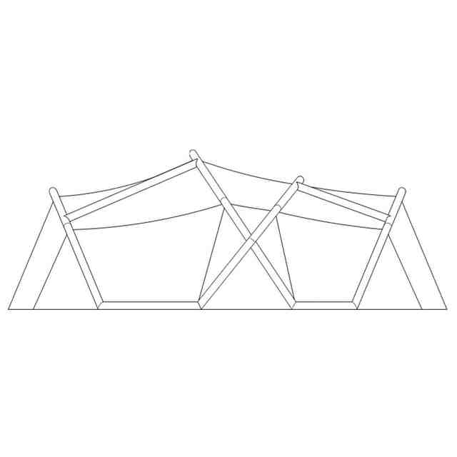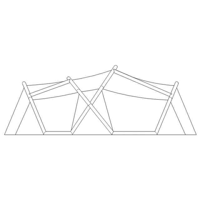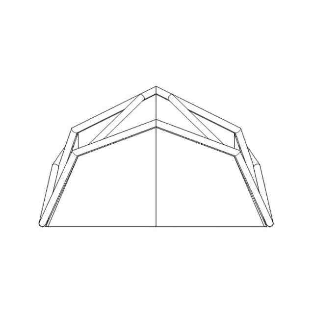 本物品は、テントである。正面図におけるテントの正面側に、出入り口となる開閉可能な開口部が設けられている。