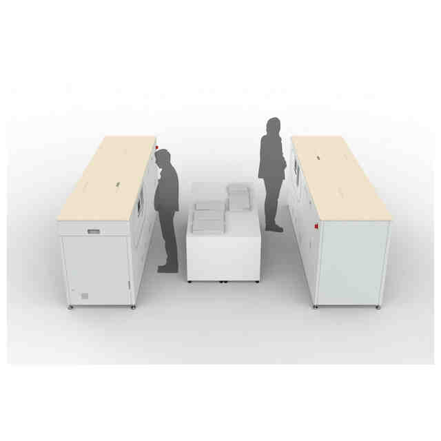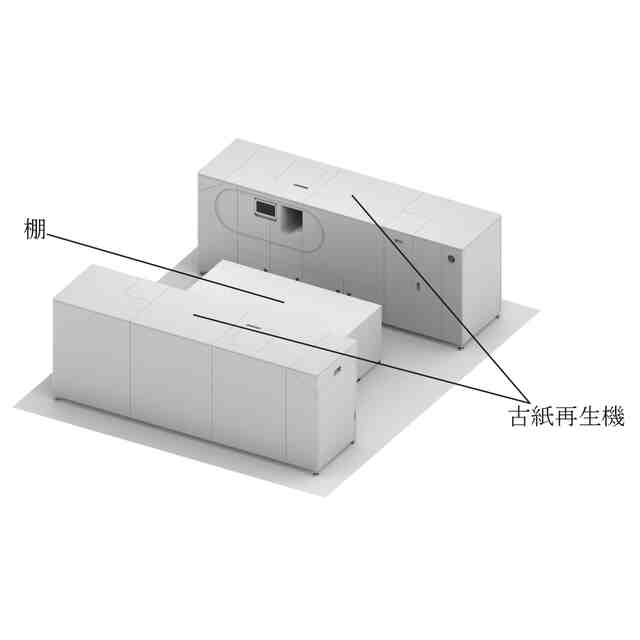 この古紙再生作業室は、例えばオフィス内に設けられ、2台の古紙再生機と棚が設置されている。古紙再生機は、使用済みの用紙等を新たな用紙に再生させるものである。なお、この古紙再生作業室は、オフィスに限定されるものではない。