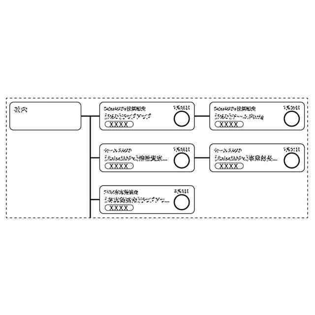 本画像は、例えば、商談などの相手方との面談の結果に関する情報を表示する画像である。面談の相手方ごとにツリー状に並べられた複数の領域に、例えば、日や名称等の面談を特定する情報を表示するとともに、右側に面談の状況を図形により表示する領域を備える。
