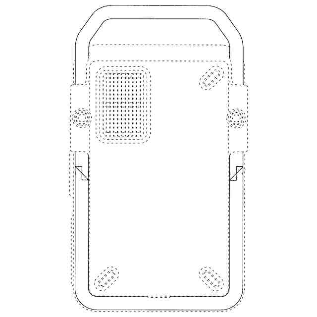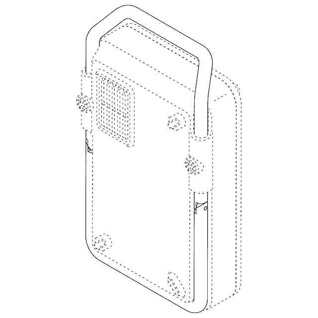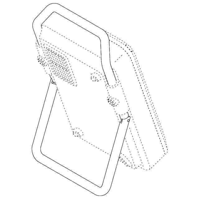 実線であらわした部分が、意匠登録を受けようとする部分である。斜視図及びスタンドを立てた状態の斜視図を含めて意匠登録を受けようとする部分を特定している。
