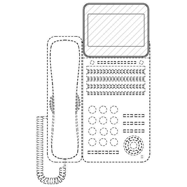 実線で示した部分は部分意匠として登録を受けようとする部分である。「正面図」等に表れる表示部はタッチパネルディスプレイとなっている。「参考斜視図」、「参考平面図」中、斜線を施した部分は発光部であって透光性を有する。「参考正面図」中、斜線を施した範囲の前面パネルは透明である。