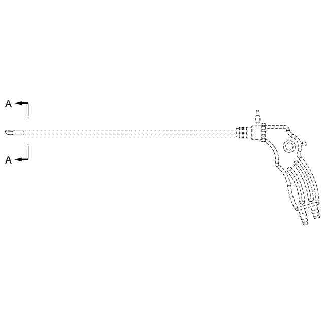 本物品は内視鏡下手術で用いられる吸引送水凝固デバイスである。すなわち、血液等の体液を体外に吸引し患部周辺に体外から洗浄液等を送水する吸引送水ノズルの機能と、メス等により切除した腫瘍等の切開患部に高周波電流を印加して組織を凝固させる電極の機能との両方を備えた手術器具である。吸引送水凝固デバイスは、細長く直線的に伸びるシャフト部とシャフト部の基端側に設けられて施術者が吸引・送水・凝固等の操作を行う操作部とから構成される。シャフト部は中空円筒状の金属パイプを基材とし、先端部が平面視先細テーパー状に加圧変形されてパイプ断面形状が円形から楕円形に整形されるとともに、先端は正面視緩やかな長刀形状に切削研磨加工される。シャフト部は基端側からほぼ全体が電気絶縁材料により被覆され、先端側の一部に金属部分が露出して電極部が形成される。