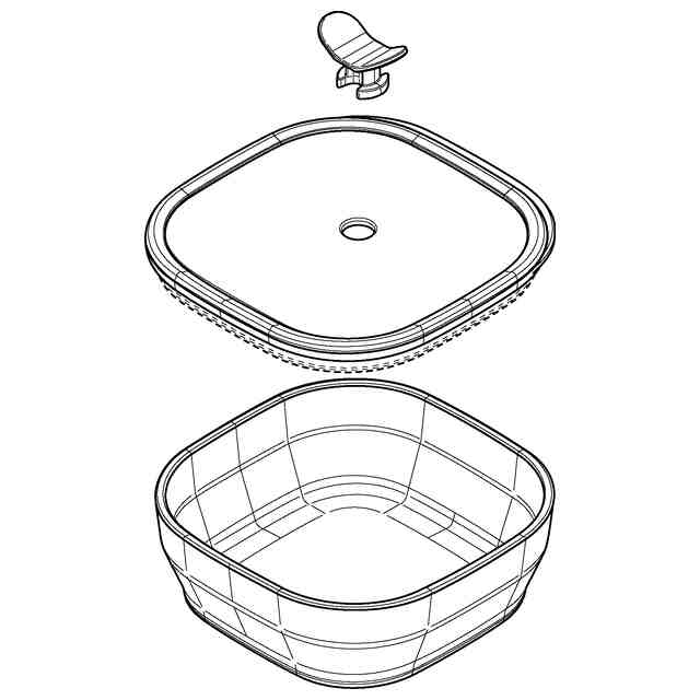 実線で表された部分が、意匠登録を受けようとする部分である。背面図は正面図と、左側面図は右側面図と、それぞれ同一に表れるため省略する。バルブ部の背面図はバルブ部の正面図と、バルブ部の左側面図はバルブ部の右側面図と、それぞれ同一に表れるため省略する。バルブが装着された蓋部の背面図はバルブが装着された蓋部の正面図と、バルブが装着された蓋部の左側面図はバルブが装着された蓋部の右側面図と、それぞれ同一に表れるため省略する。容器部の背面図、右側面図、左側面図は、容器部の正面図と、それぞれ同一に表れるため省略する。各図に表されている破切れた細線は、模様を表す線ではなく、立体表面の形状を表す線である。